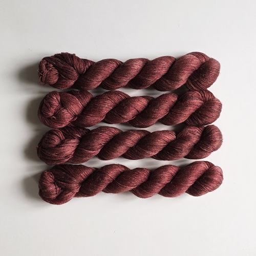 Så er der et nyt sommergarn i shoppen! Den lækre blanding af alpakka, hør og silke giver et svalt og glansfuldt garn, med det helt særlige “rustikke” look som hørfibrene giver. Garnet kan godt føles lidt hårdt og stift i feddet, men det bliver blødt og lækkert når du strikker med det. De lange hørfibre der stikker ud af feddet bliver også strikket med så det endelige resultat fremstår glat og lækkert. Garnet er særdeles velegnet til sommerens toppe og tee’s, men fine hulmønstersjaler ville også virkelig komme til sin ret med dette garn. Strik gerne noget der har lidt “luft” i maskerne og som fortjener er smukt fald.