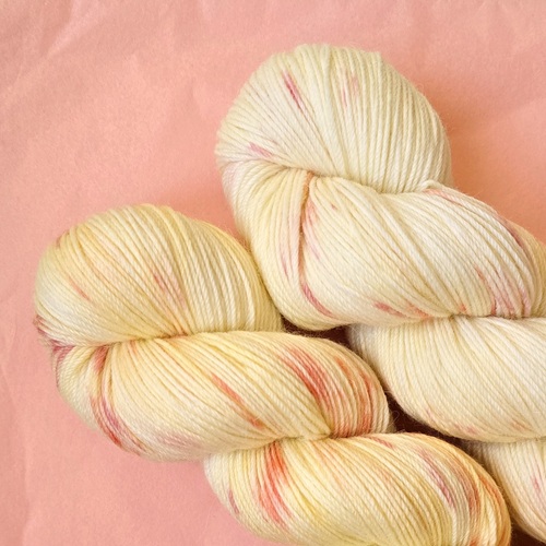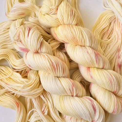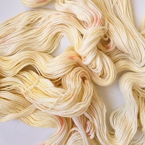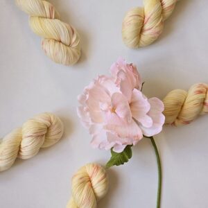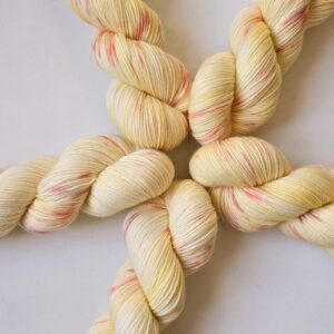 Garnet er håndfarvet af mig med syrefarver i min lille enmandsproduktion på Frederiksberg. Jeg har fokus på bæredygtighed igennem alle processer af farvningen og køber kun garn som er dyreetisk i orden. Garnet er nænsomt håndvasket med allergi-venlig uldsæbe efter farvning og burde ikke smitte af. Det anbefales dog alligevel at vaske dit strik sjældent og i køligt vand – så holder både farver og fibre længere.