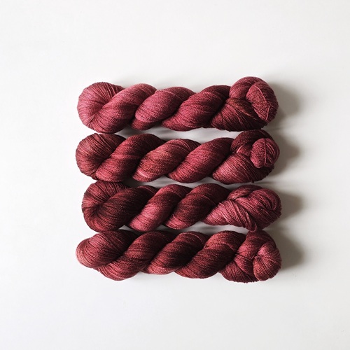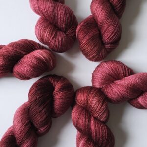 Garnet er håndfarvet af mig med syrefarver i min lille enmandsproduktion på Frederiksberg. Jeg har fokus på bæredygtighed igennem alle processer af farvningen og køber kun garn som er dyreetisk i orden. Garnet er nænsomt håndvasket med allergi-venlig uldsæbe efter farvning og burde ikke smitte af. Det anbefales dog alligevel at vaske dit strik sjældent og i køligt vand – så holder både farver og fibre længere.