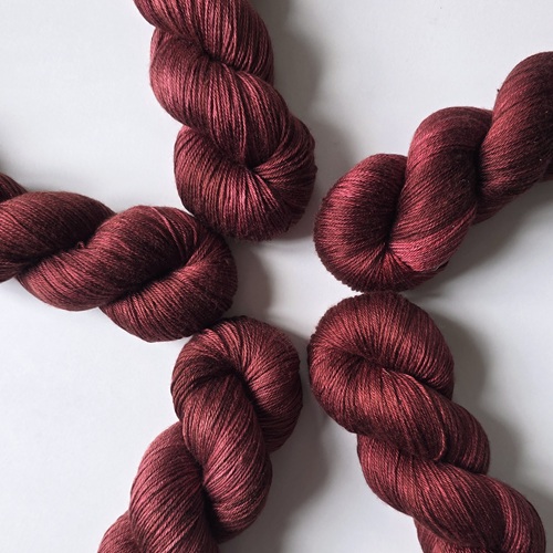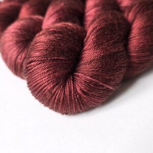 Garnet er håndfarvet af mig med syrefarver i min lille enmandsproduktion på Frederiksberg. Jeg har fokus på bæredygtighed igennem alle processer af farvningen og køber kun garn som er dyreetisk i orden. Garnet er nænsomt håndvasket med allergi-venlig uldsæbe efter farvning og burde ikke smitte af. Det anbefales dog alligevel at vaske dit strik sjældent og i køligt vand – så holder både farver og fibre længere.